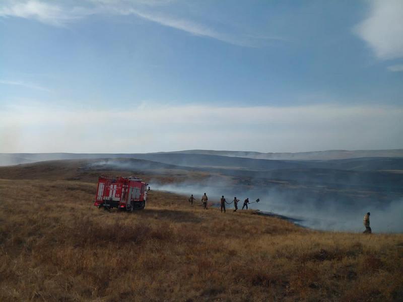Шет ауданында, Мыңбаев а/о, Қызылтау ауылынан 12 шақырым жерде, 5 қыркүйекте сағат 09:28-де құрғақ шөп өртенді (алдын ала ауданы – 1000 га).