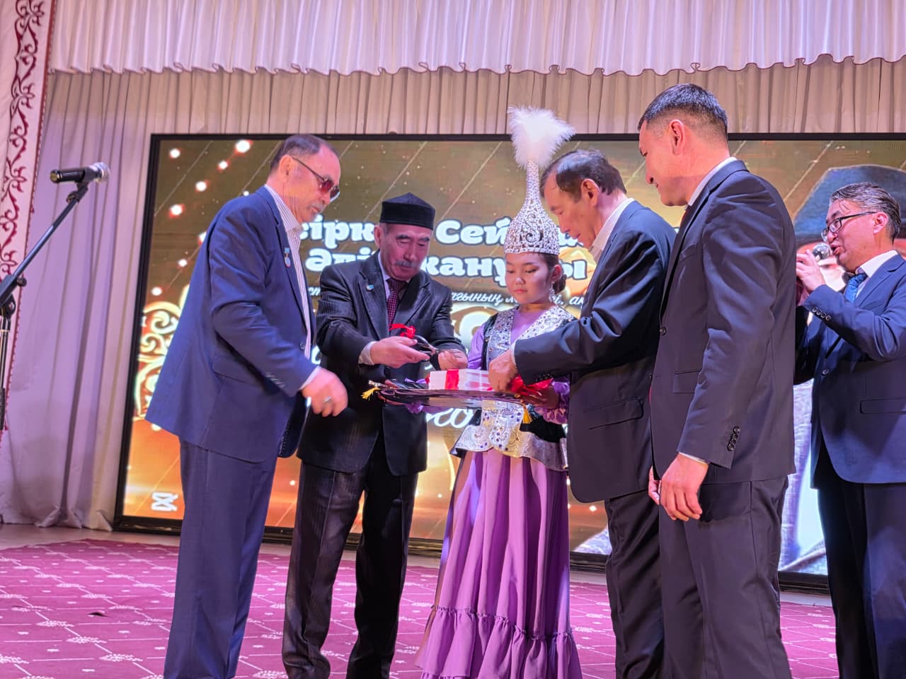 Мерейтой иесін құттықтау үшін сахнаға Ақтоғай ауданының әкімі Абылай Аманжолов көтеріліп, жүрекжарды лебізін білдірді.
