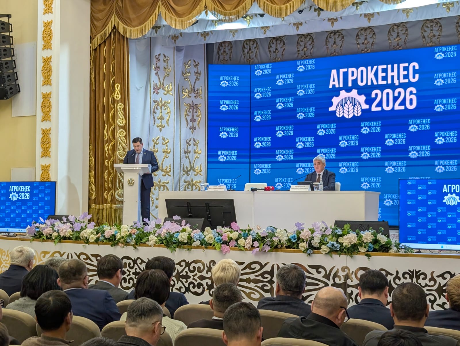 Бұдан кейін Мәдениет үйінде болған агрокеңесті облыс әкімі Ермағанбет Бөлекпаев ашып, Ауыл шаруашылығы вице-министрі Азат Сұлтанов республика бойынша биылғы көктемгі егіс науқанына дайындық барысы жайлы баяндап, оны уақытында және ұйымдасқан түрде өткізу шараларына тоқталды.