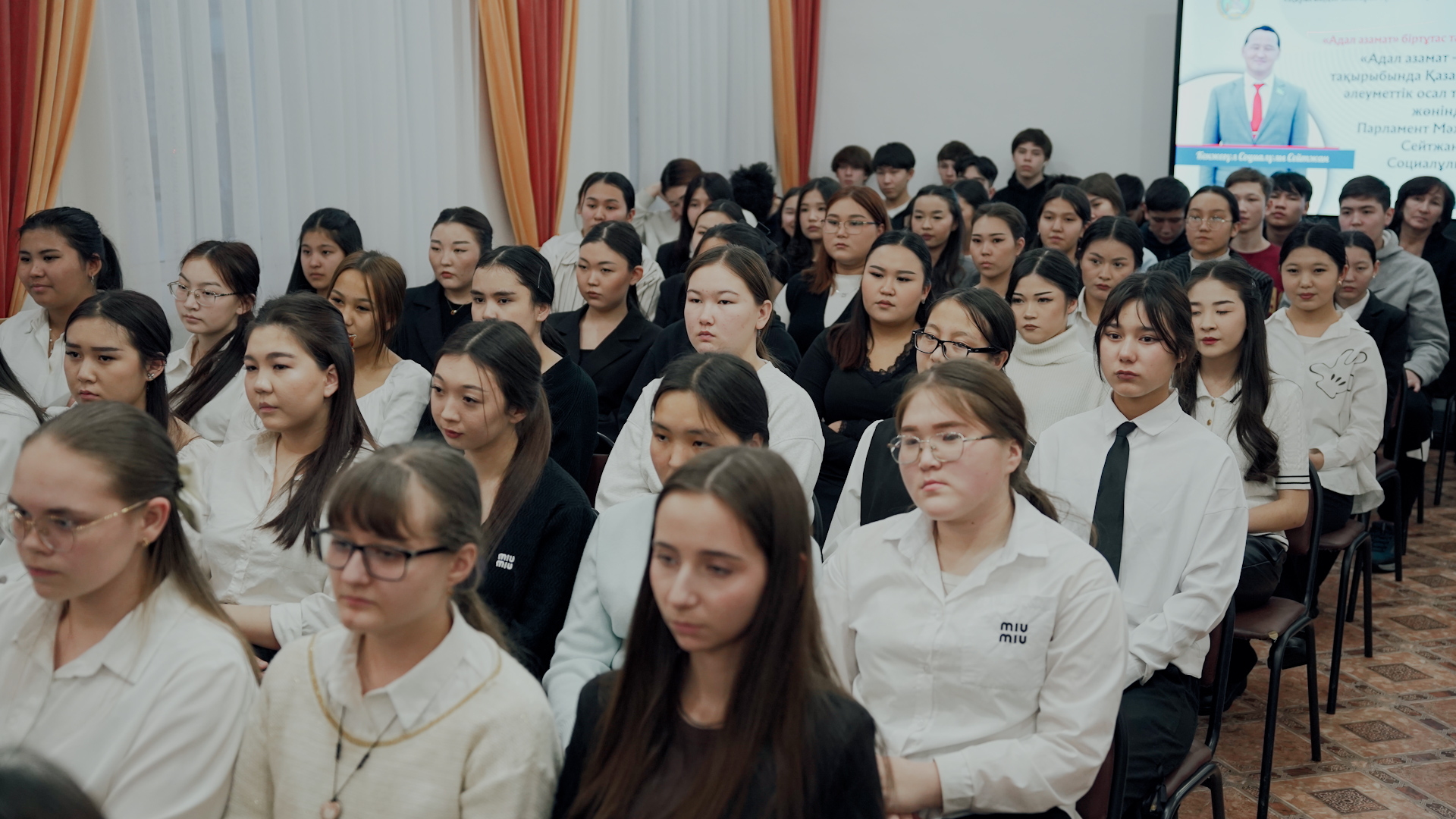 Қарағанды жоғары гуманитарлық колледжінде «Адал азамат» біртұтас тәрбие бағдарламасы аясында кездесу ұйымдастырылды. Іс-шараға Қазақстан Республикасы әлеуметтік осал топтардың құқықтары жөніндегі уәкіл, Парламент Мәжілісінің депутаты Сейтжан Кенжеғұл Социалұлы арнайы қатысып, студенттермен ашық форматта кездесу өткізді.