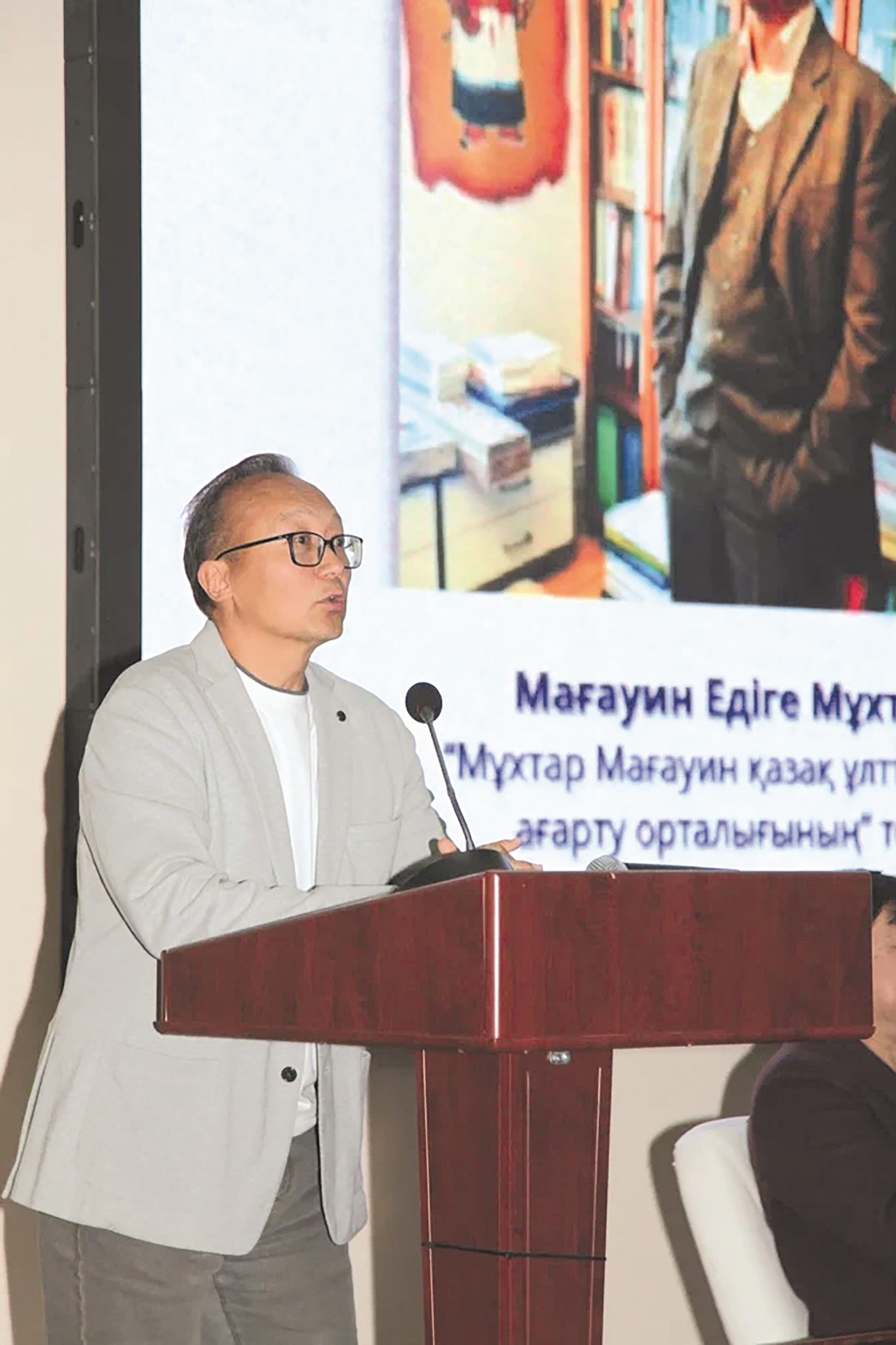 Қазақстан Республикасы Ғылым және жоғары білім министрлігі Тіл саясаты комитетінің төрағасы, филология ғылымдарының кандидаты Ербол Тілешов сөз сөйледі.