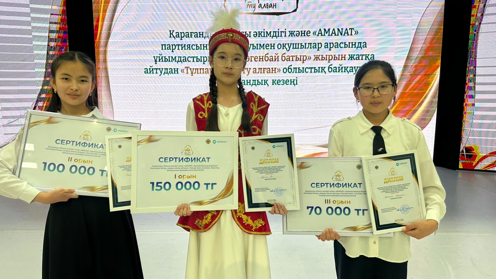 Нәтижесінде қазылар алқасының шешімімен Қарқаралы ауданы бойынша үш оқушы мен олардың ұстаздары жеңіс тұғырына көтеріліп, байқаудың облыстық кезеңіне жолдама алды: