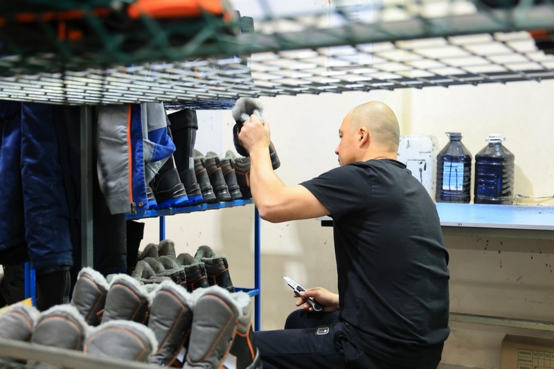– Табан екі қабатты, құйма тәсілмен жасалады. Әр тапсырыс берушінің талабын қатаң сақтаймыз. Мысалы, дәнекерлеушілер мен электриктерге арналған аяқ киім мүлде металсыз өндіріледі. Бау ілгектері орнына арнайы былғары тұтқа қойылады. Дәнекерлеушілерге арналған үлгілерде ұшқыннан қорғайтын қосымша клапан бар. Геологтар мен мұнайшыларға арналған модельдер бір-біріне ұқсас. Былғары толықтай табиғи, қалыңдығы 2 миллиметрге дейін жетеді және су өткізбейтін арнайы қоспамен өңделеді, – деді цех шебері Ольга Медведева.