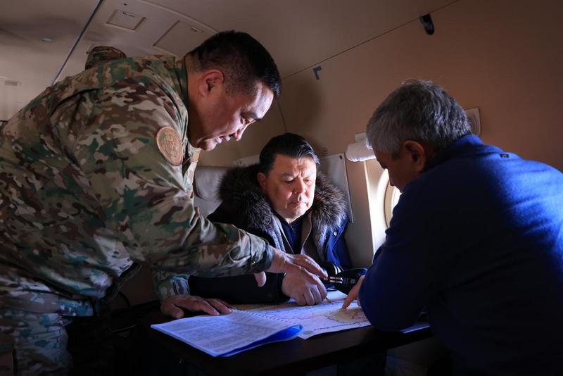 Облыс әкімі Ермағанбет Бөлекпаевпен бірге су басу қаупі бар аумақтарды әуеден шолып, қар еруі алдындағы жағдайды бағалады.