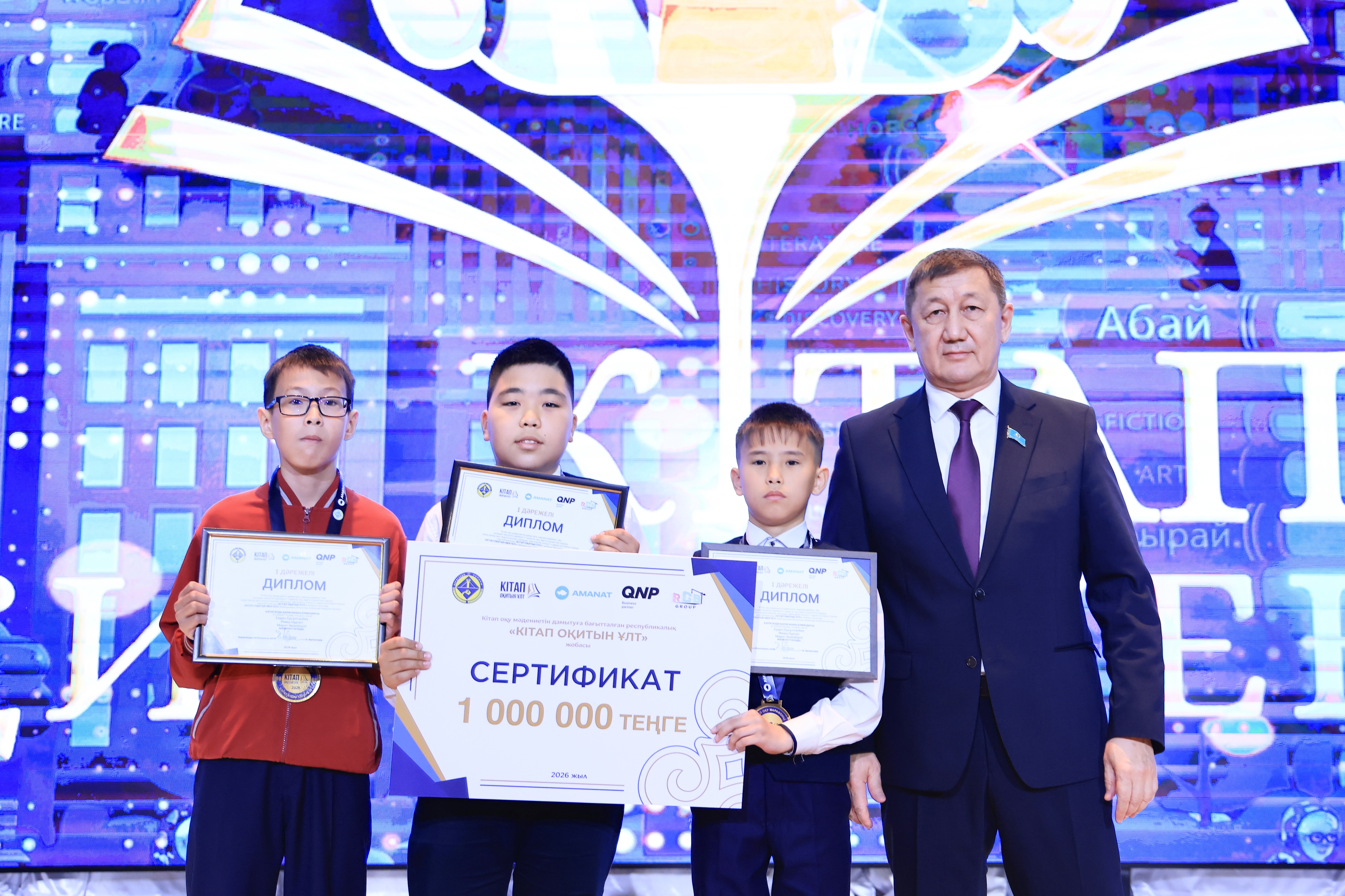 Байқау қорытындысы бойынша жеңімпаздар қомақты ақшалай сыйлықтармен марапатталды. Атап айтқанда, І орын иегерлеріне 1 000 000 теңге, ІІ орынға 600 000 теңге, ІІІ орынға 400 000 теңге табысталды. Осылайша, жоба рухани бәсекені нақты қолдаумен ұштастырып, кітап оқуға деген ынтаны арттырудың тиімді үлгісін көрсетті.