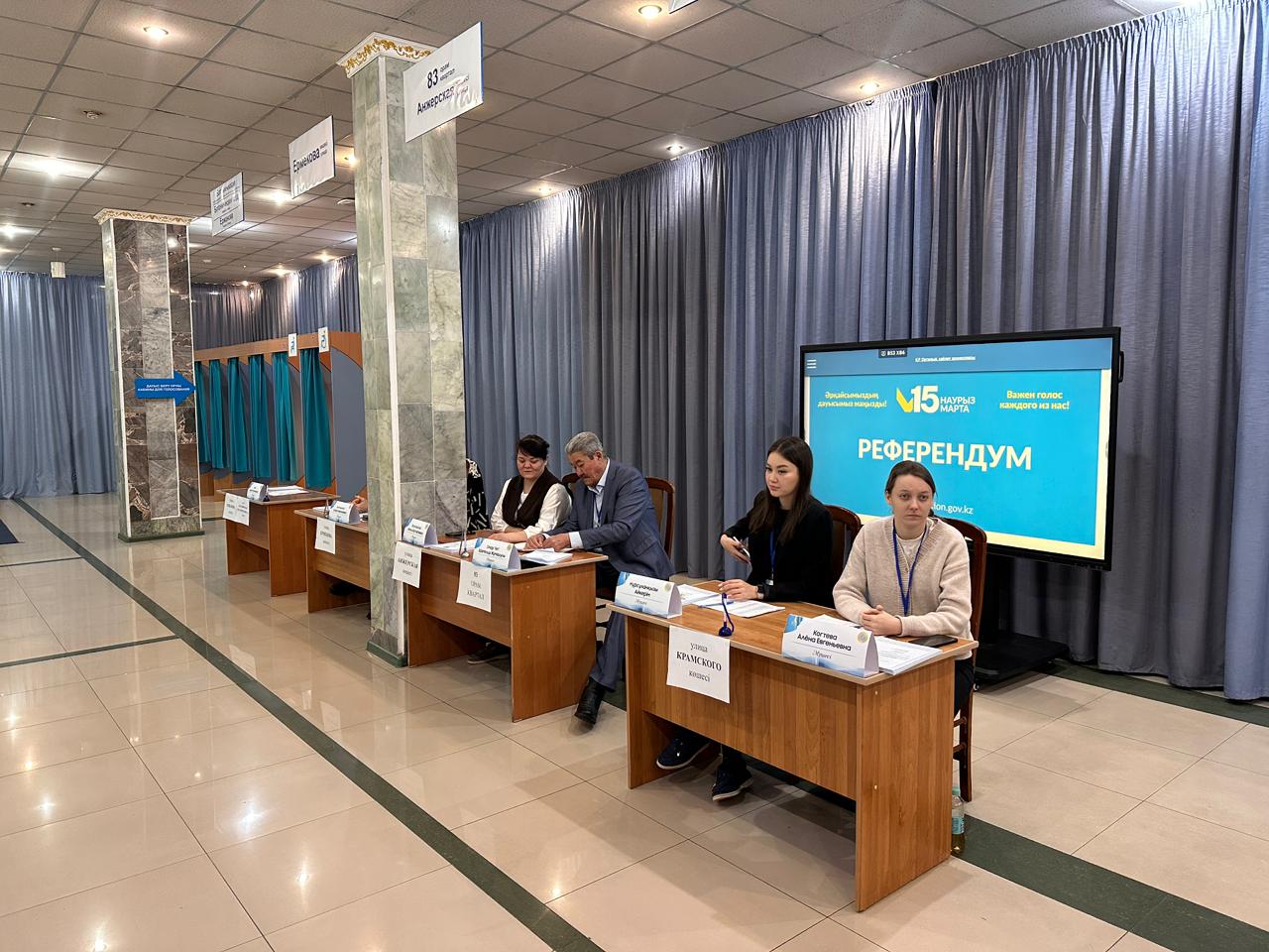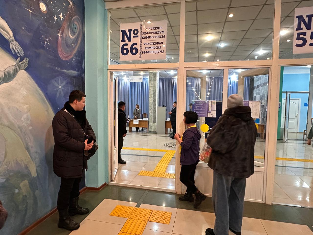Қарағандыдағы №66 учаскелік референдум комиссиясы Қарағанды экономикалық университетінде орналасқан. Мұнда 2305 дауыс беруші тіркелген. Сағат 7:00-ден бастап дауыс беруді бастап кетті.