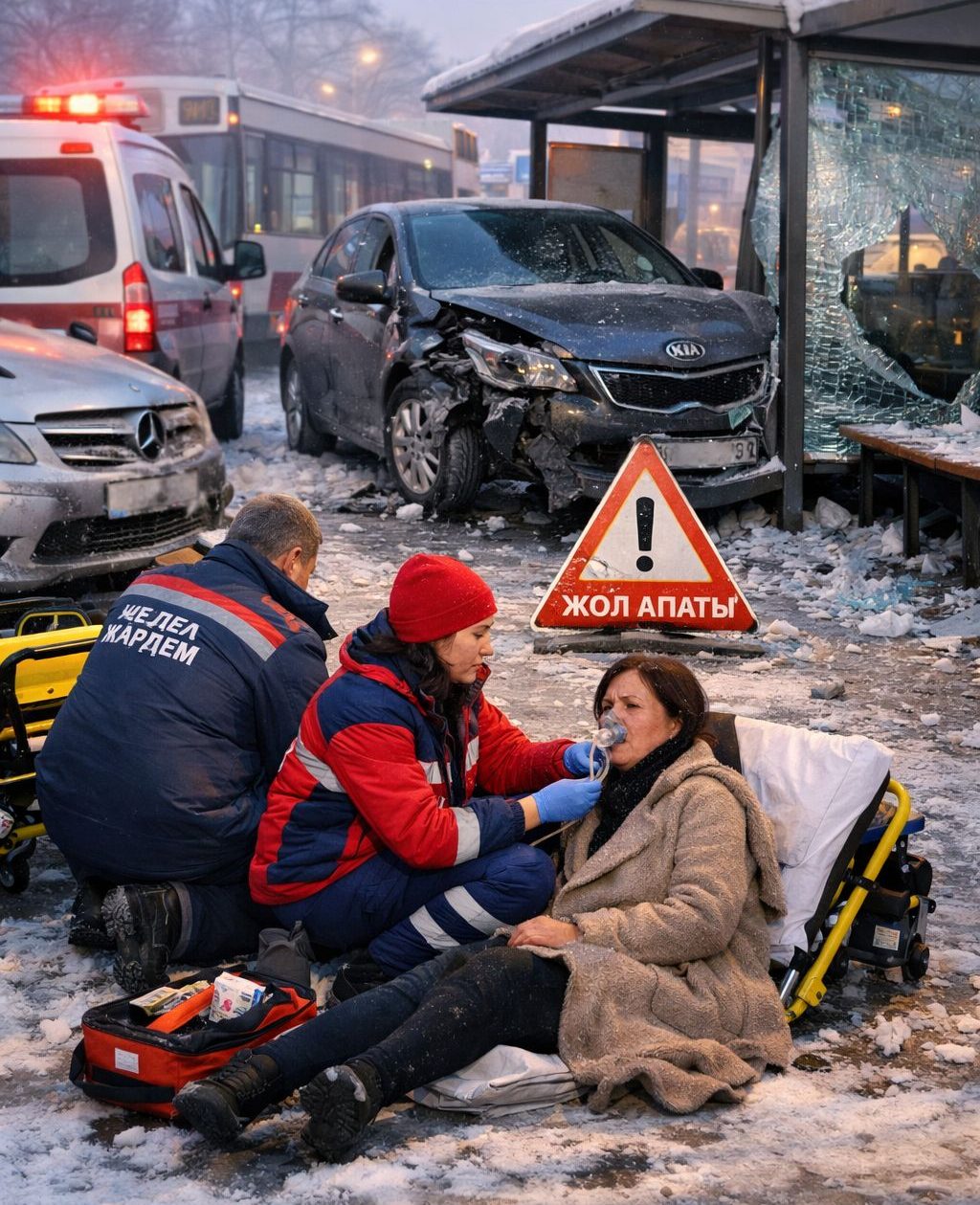 Оқиға 26 қаңтар күні шамамен сағат 8:20-да Тәттімбет көшесінде болған. Алдын ала мәлімет бойынша, ВАЗ-2111 автокөлігін басқарған 42 жастағы жүргізуші KIA көлігімен соқтығысудың алдын алу үшін манёвр жасап, Mercedes автокөлігімен соқтығысқан. Осы сәтте KIA жүргізушісі де жол апатын болдырмау мақсатында аялдама павильонына соғылған.