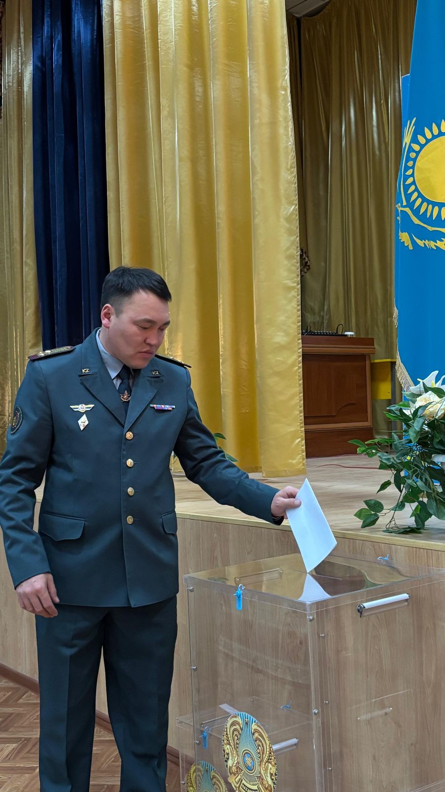 Әскери бөлім аумағындағы дауыс беру учаскесі таңғы сағат 06:00-де өз жұмысын бастап, ең алғаш болып әскери командирі полковник Рауан Сарсенгалиевич өз таңдауын жасады. Жеке құрамда өз азаматтық таңдауларын жасауға белсенді түрде қатысты. Әскери қызметшілер белгіленген тәртіпке сәйкес келіп, ел болашағына қатысты маңызды шешім қабылдауға өз үлестерін қосты.