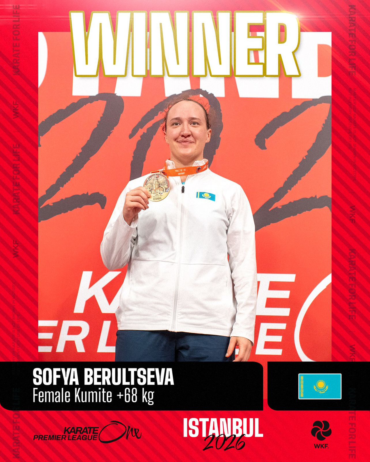 Софья Берульцева жасөспірімдер арасындағы жарыстардан бастап, бүгінгі таңда кәсіби спорт деңгейіне дейін көтерілген тәжірибелі каратэші. Стамбулда өткен Premier League турнирінде ол +68 келі салмақ дәрежесінде финалға шығып, шешуші жекпе-жекте Непал құрамасының спортшысы Арика Гурунгты айқын басымдылықпен жеңіп жықты. Бұған дейін де ол әлемдік және құрлықтық жарыстарда бірнеше мәрте жүлдегер атанып, Қазақстан каратэсінің көшбасшыларының бірі екенін дәлелдеген. Сонымен қатар, 55 келі салмақ дәрежесінде ел намысын қорғаған Бэлла Самашева де жоғары деңгейде өнер көрсетіп, алтынды жұптады.