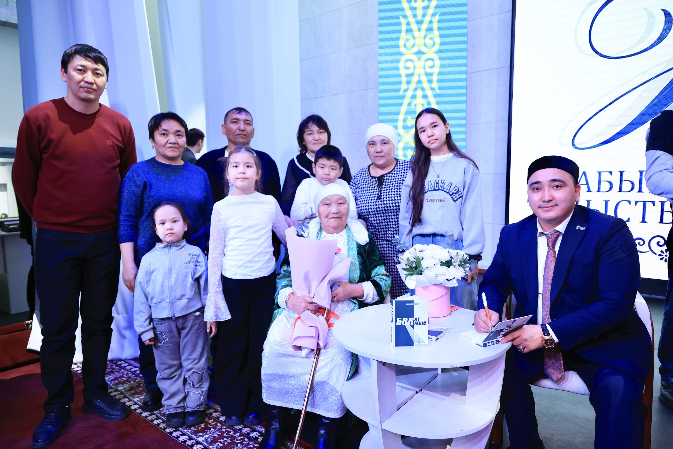86 жастағы «Ерлігі ел аузында жүрген апа» Сәкүл Сақбаева мен “Сабырдың сыңарындай болған Сапарбек Жақұдин” Қасымхан Ғалымның кейіпкерлері. Сәкүл әже авторға батасын берді.