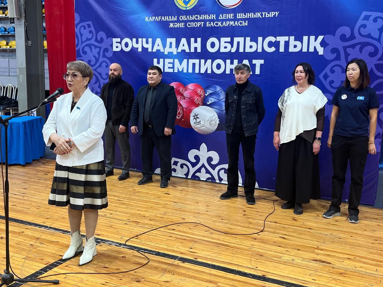 Қарағандыдағы «Жастар» спорт кешенінде бочча спорты бойынша облыстық чемпионат басталды. Өңірден тірек-қимыл аппараты зақымданған 22 қатысушы өнер көрсетуде. Іс-шараның ашылу салтанатына облыстық мәслихат депутаты Қадиша Оспанова мен облыстық дене шынықтыру және спорт басқармасы басшысының орынбасары Дәурен Есімханов қатысты.