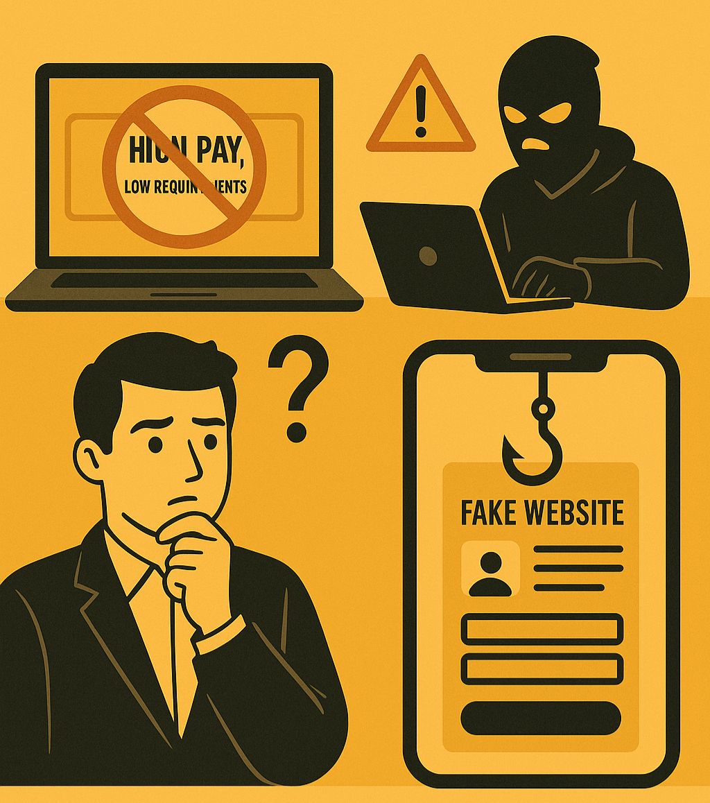 Қазақстан Республикасы Бас прокуратурасы Құқықтық статистика және арнайы есепке алу Комитетінің Қылмыстық қауіп-қатерлердің және қоғамдық қауіпсіздіктің тәуекелдерін болжау орталығы жұмысқа орналасу саласындағы қылмыскерлердің белсенділігі туралы ескертеді. Соңғы уақытта интернет-алаяқтардың жұмыс іздеушілерді алдау схемалары күрт өсті. Шетелдік және отандық дереккөздерге сәйкес, қылмыскерлер аз талаптармен жоғары табыс ұсынатын жарнамаларды танымал платформалар мен әлеуметтік желілерде жариялап, азаматтардың сеніміне кіруде.