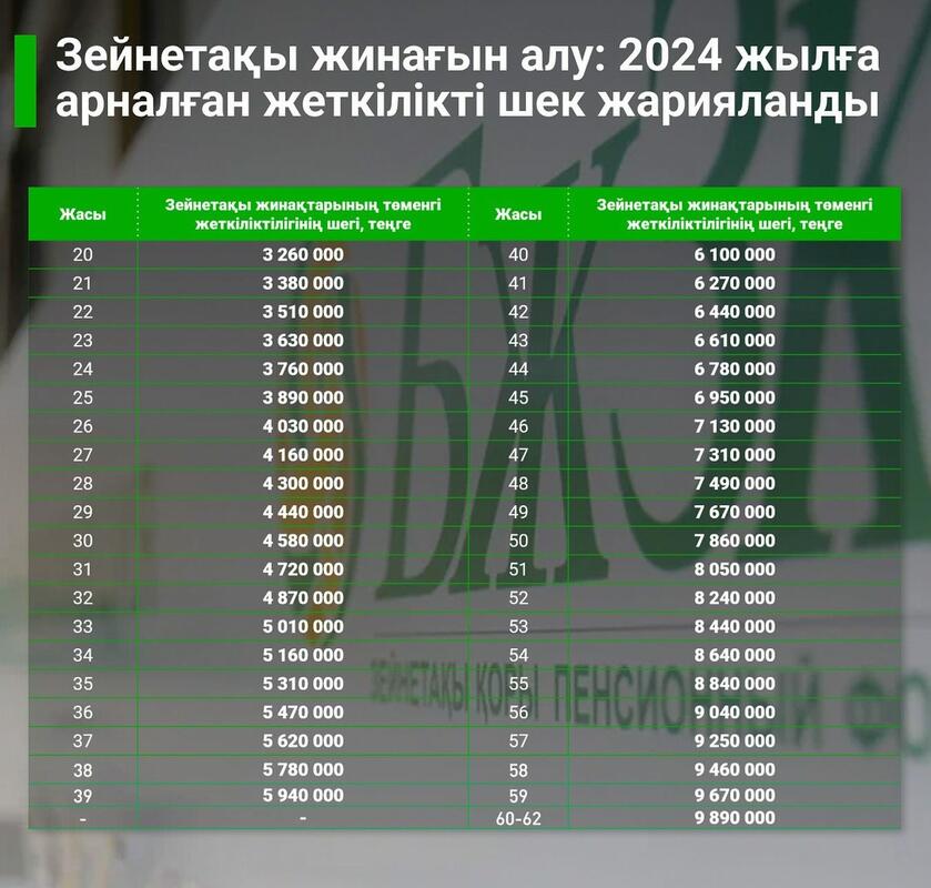 Зейнетақы жинағын алу: 2024 жылға арналған жеткілікті шек жарияланды