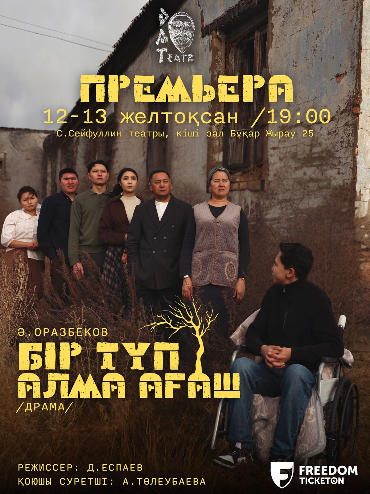 12-13 желтоқсан күндері Сәкен Сейфуллин атындағы облыстық академиялық қазақ драма театрында тәуелсіз «Дат» театры Әлімбек Оразбековтің «Бір түп алма ағаш» драмасын жаңаша форматта сахналамақ. Қойылым алдында аталған ұжымның басшысы белгілі режиссер, театр қайраткері Дунай Еспаевты аз-кем әңгімеге тарттық.