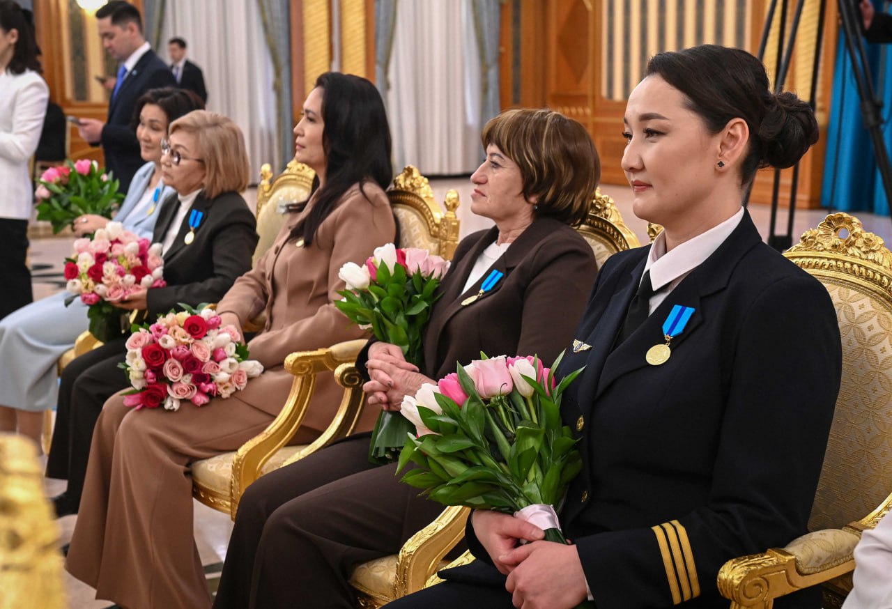 – Осы залда қазақ тілі мен әдебиетінің мұғалімдері де бар. Олар білімді, ойы ұшқыр, шығармашыл және отаншыл ұрпақ тәрбиелеуге мол үлес қосып жүр. Осыған орай, тәжірибелі педагог Жанна Левковичке «Құрмет» ордені, ал жас мұғалім Мария Суринаға «Шапағат» медалі табысталады. Тікұшақ пилоты Ақерке Шопатаеваның еңбегі аса маңызды десек қате болмайды. Ол талай мәрте орман өртін сөндіруге және басқа да құтқару жұмыстарына қатысып, кәсіби тұрғыдан білікті маман ретінде қажырлы қызмет етуде. Бүгін оған «Ерен еңбегі үшін» медалі беріледі. Бұдан бөлек, Жапониядан келген белгілі өнерпаз Сузуки Канон да осы салтанатты іс-шараға арнайы шақырылды. Сузуки ханым Қазақстанда балет өнерін дамытуға белсене атсалысуда. Сондықтан оны «Ерен еңбегі үшін» медалімен марапаттаймын. Біз Отанымыздың көркейіп, гүлденуіне зор еңбек сіңіріп жүрген осындай аруларды мақтан тұтамыз, оларды жас буынға үлгі етеміз, – деді Қасым-Жомарт Тоқаев.