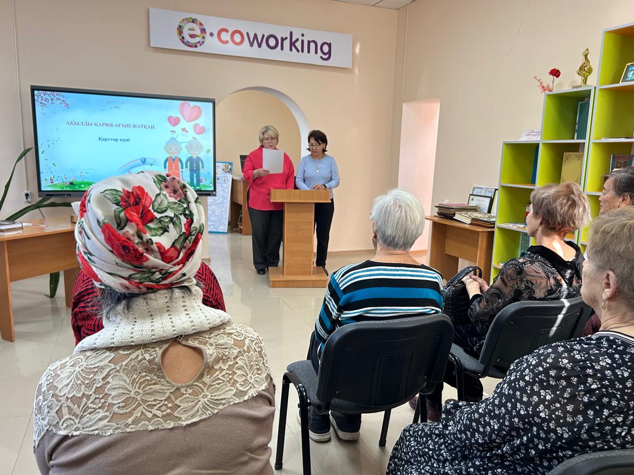Бұл шараға кенттің сыйлы қариялары шақырылып, кітапхана қызметкерлері оларды мерекемен құттықтап, ақын-жазушыларымыздың қарттарға арналған өлеңдері мен ғибратты сөздеріне тоқталып, одан әрі викторина сұрақтары шешіліп, жиналғандар мақал-мәтел айтудан жарысты. Ретро өлеңдер жасырылып, оны тапқан соң бәрі хормен ән айтып, би де биленді.