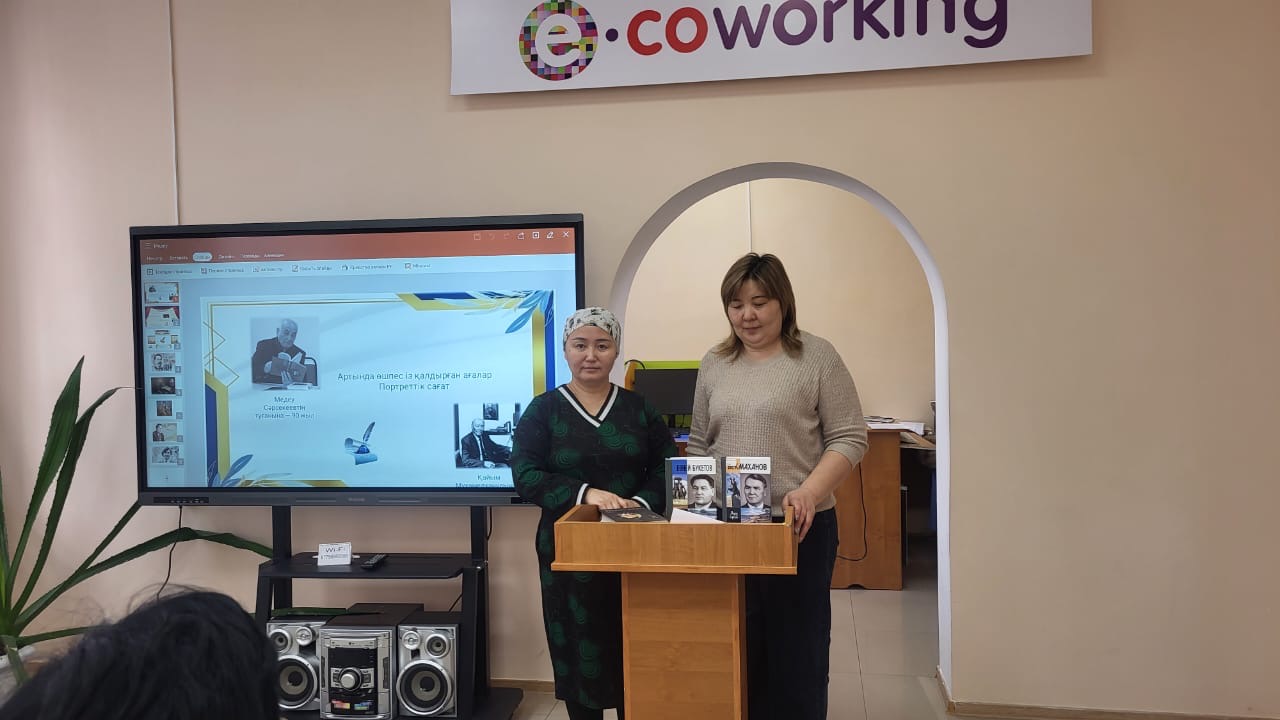 Портреттік сағатта кітапхана қызметкерлері оқырмандарды осы екі тұлғаның өмірбаяны мен шығармашылық жолдарымен таныстырып, олардың халқымыздың біртуар ұлдары Ұлы Абай мен атақты ғалымдар Қаныш Сәтбаев, Ермұқан Бекмаханов пен Евней Бөкетовті танытудағы еңбектеріне тоқталып, соған орай ұйымдастырылған көрмеге шолу жасады.
