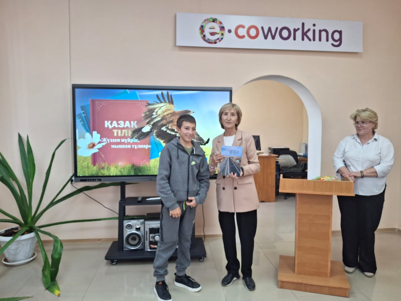 Одан әрі кітапханашылар оларға әлеуметтік желіде Тілдер күніне орай жарияланған “Жүзден жүйрік, мыңнан тұлпар” сөзжұмбағын шешу үшін телефондарына QR-код арқылы оны жүктеп алуды ұсынып, әрі сұрақтарын қағазға шығарып алып, өзара сайысушы топтарға таратты. Соның қорытындысында жауаптарды дұрыс толтырған “Алар” тобы жеңімпаз болып танылды.