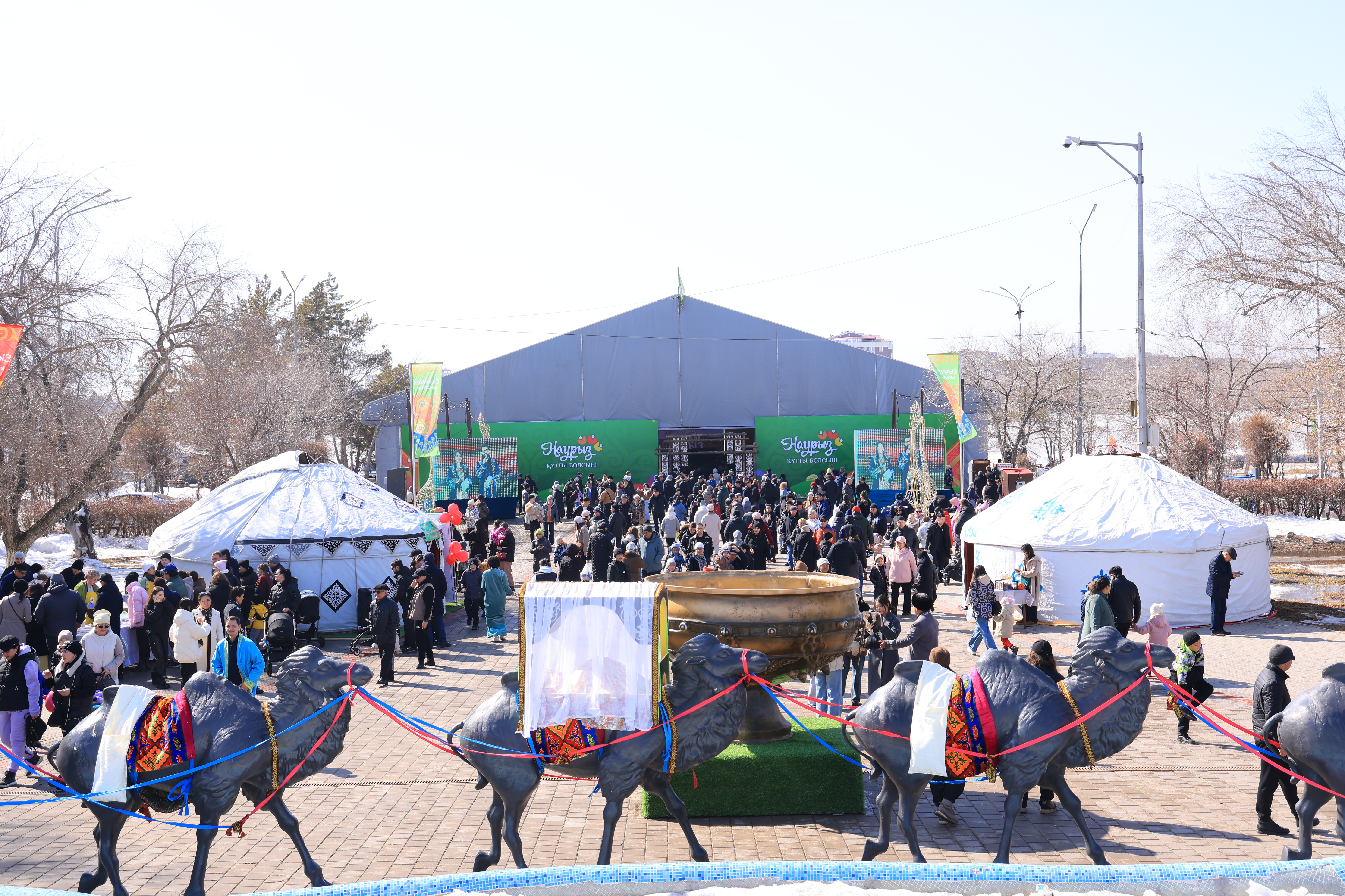 Бүгін Қарағанды Орталық саябағына ағылған халықтың қарасы қалың. Себебі, мұнда қарағандылықтар Наурыз мейрамын тойлап жатыр. Мерекелік алаңда әр мекеме өз киіз үйін тігіп, ұлттық дәстүрге сай қазан көтеріп, ас әзірлеуде.