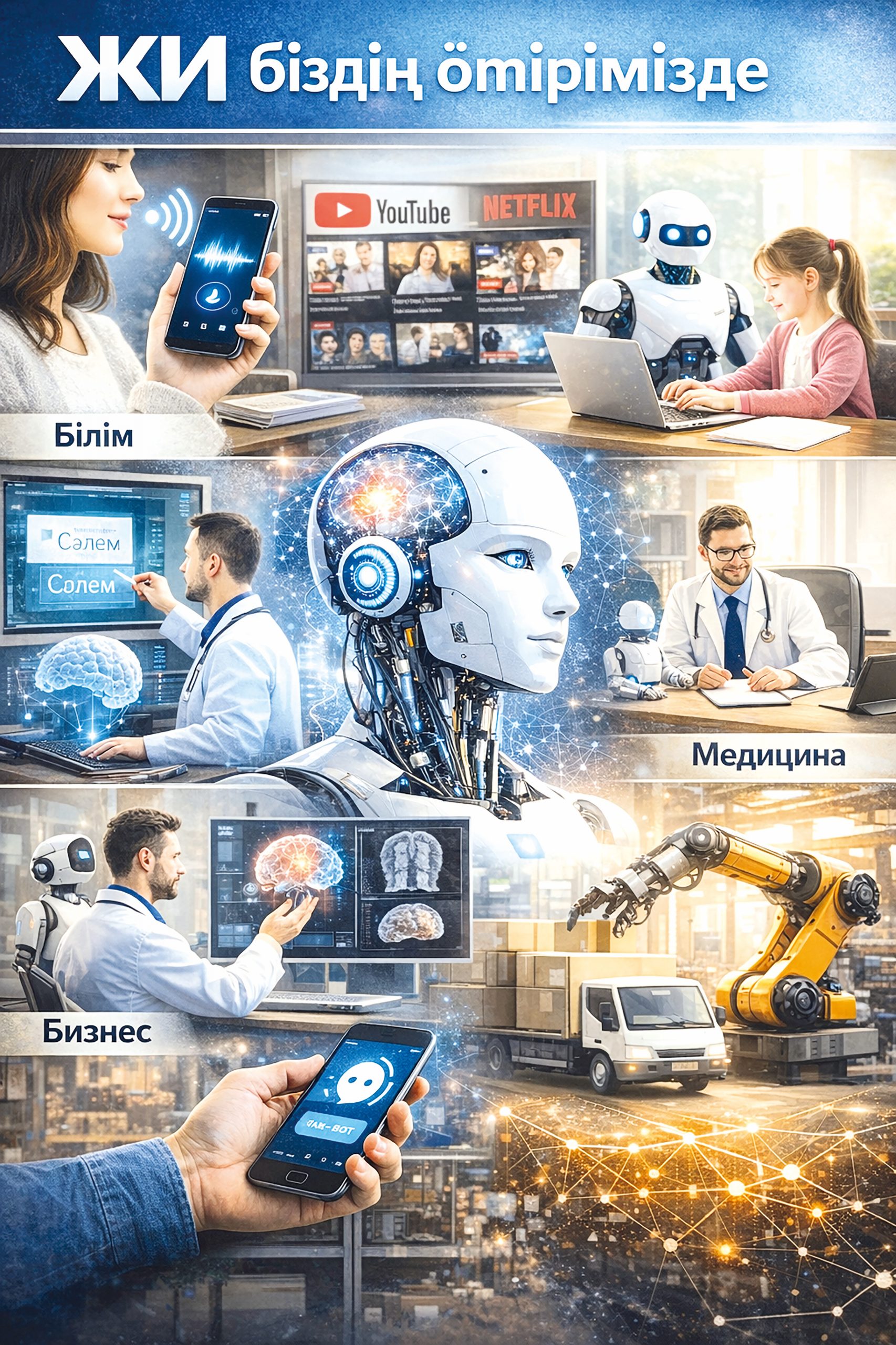 Жасанды интеллект – адамның ойлау, талдау, үйрену қабілеттерін алгоритм арқылы модельдейтін жүйе екенін барлығымыз білеміз. Бүгінде ол тек ІТ саласында ғана емес, медицинада, білімде, өндірісте, қаржыда, журналистикада, мемлекеттік басқаруда кеңінен қолданылып келеді. Диагноз қоятын бағдарламалар, оқушының білім деңгейіне қарай тапсырма ұсынатын платформалар, өндірістегі қауіпсіздікті бақылайтын жүйелер – оның айқын дәлелі.
