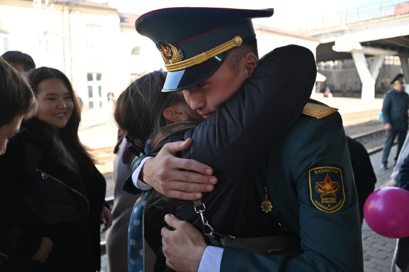 Бір жыл ішінде олар әскери дайындық, физикалық және әскери тәртіп бойынша үздік көрсеткіштерге қол жеткізіп, өздерінің борышын адал орындады. Сарбаздарды вокзалда олардың туыстары, достары және әскери қызметкерлер салтанатты түрде қарсы алды. Келген әр сарбазға алғыс білдіріліп, оларға жаңа өмір жолында сәттілік тіледі.