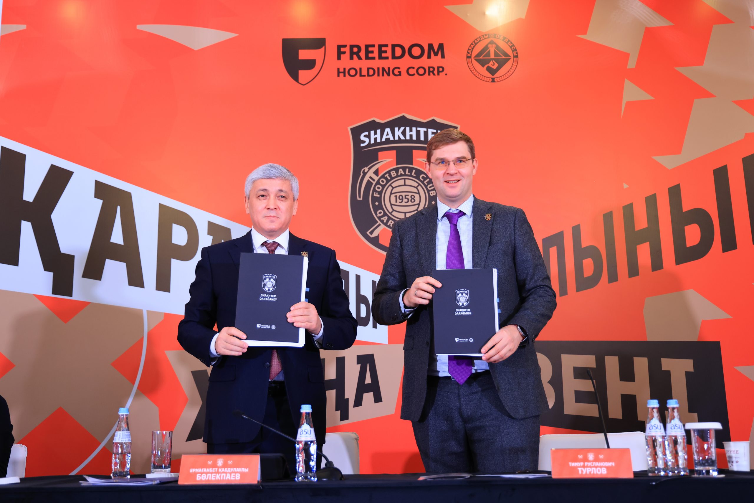 Бүгін Қарағандыда Freedom Holding Corp. пен Қарағанды облысының әкімдігі арасында өңірде кәсіби футболды дамытуға бағытталған өзара ынтымақтастық туралы меморандум бекітілді. Маңызды құжатқа Freedom Holding Corp.-тың бас атқарушы директоры Тимур Турлов пен Қарағанды облысының әкімі Ермағанбет Бөлекпаев қол қойды.