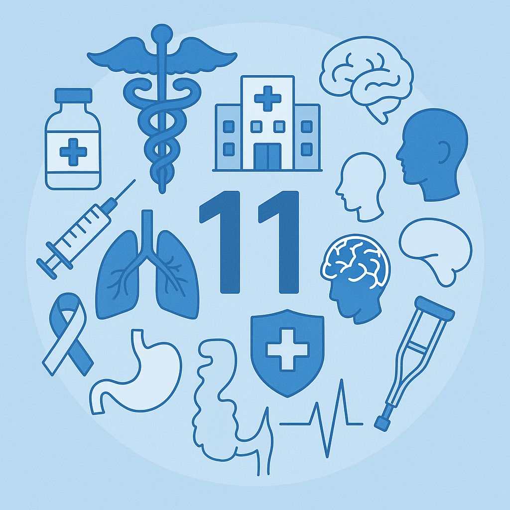 туберкулез, АИТВ инфекциясы, созылмалы вирустық гепатиттер және бауыр цирроздары, қатерлі ісіктер, психикалық және мінез-құлық бұзылыстары, орфандық аурулар, жіті миокард инфарктісі (алғашқы 6 ай), нерв жүйесінің дегенеративті аурулары, ОНЖ демиелинизациялық аурулары, эпилепсия, цереброваскулярлық аурулар (инсульттан кейінгі жағдай-бір жыл бойы).