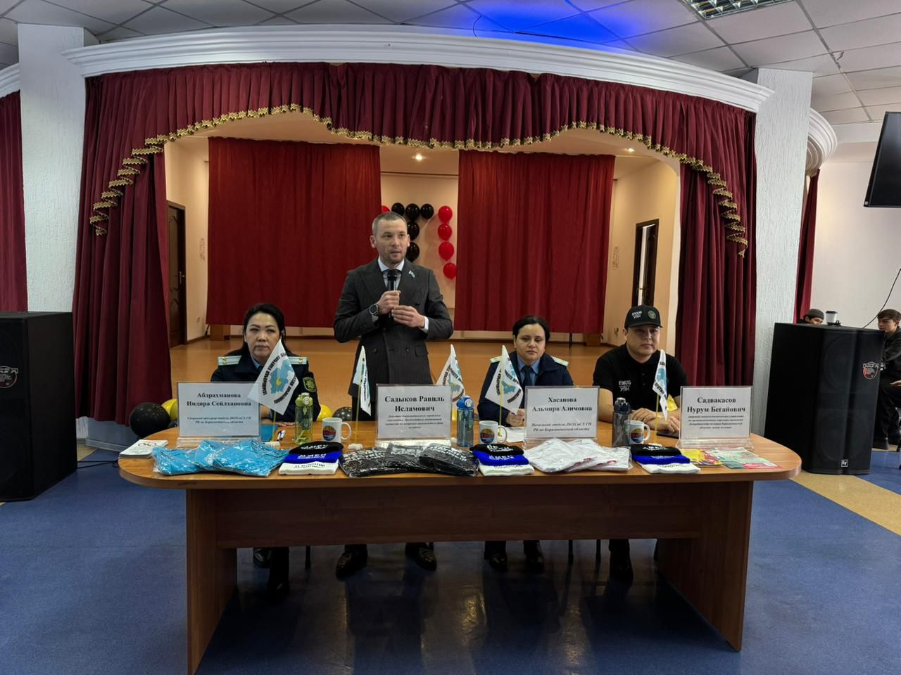 Аталған шараға Қарағанды қалалық мәслихатының депутаты, Заңдылық және адам құқықтары мәселелері жөніндегі тұрақты комиссияның төрағасы Равиль Садыков, Қазақстан Республикасы Бас прокуратурасының Құқықтық статистика және арнайы есепке алу жөніндегі комитетінің Қарағанды облысы бойынша департаментінің бөлім бастығы Әлмира Хасанова мен департамент бөлімінің аға прокуроры Индира Абдрахманова, Қарағанды облысы полиция департаментінің есірткі қылмыстарына қарсы іс-қимыл басқармасының аға жедел уәкілі, полиция майоры Нұрым Сәдуақасов қатысты.